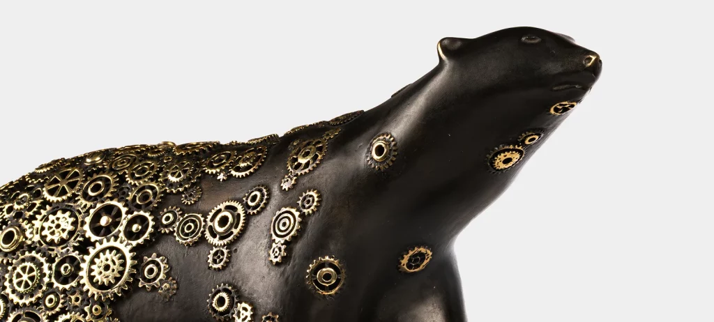 From this encounter is born The Gear Bear, a singular artwork blending purity of form with the poetry of mechanism.