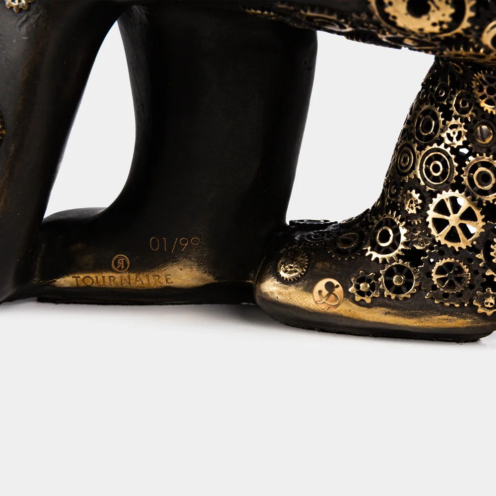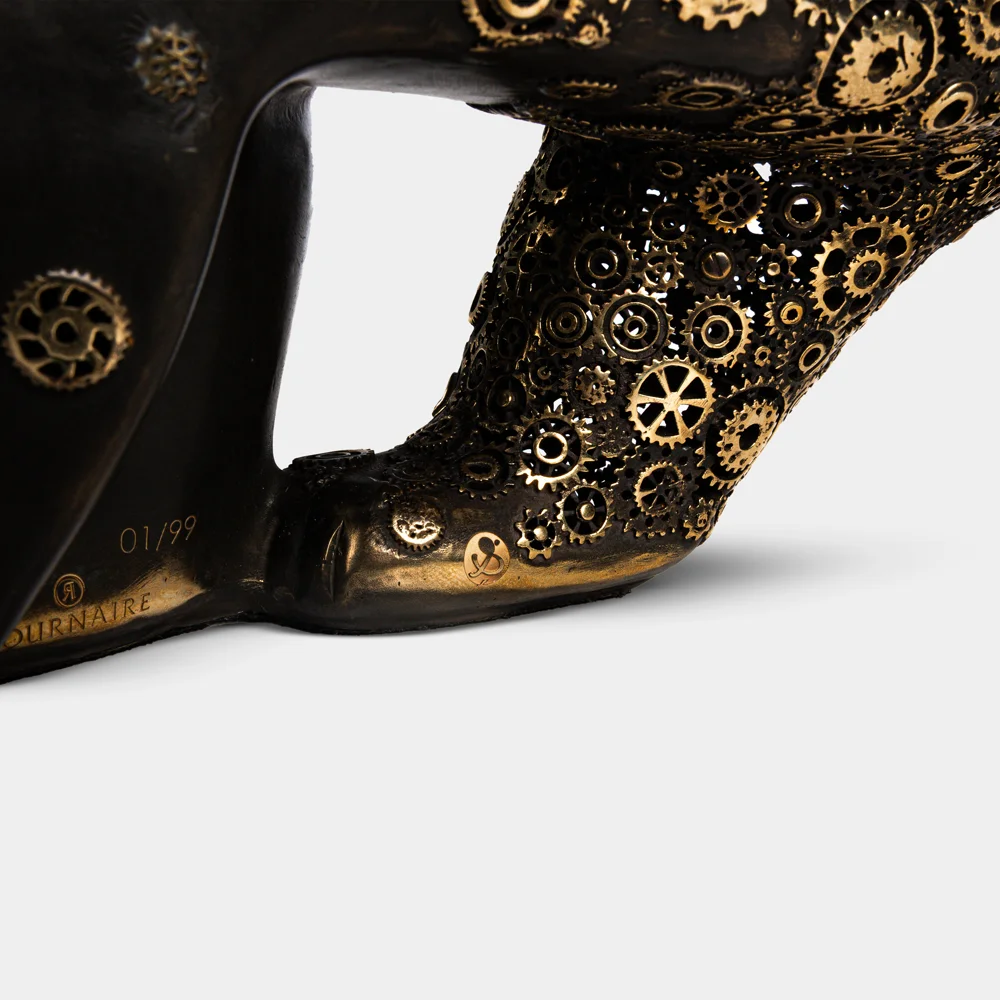 His use of gears, a signature motif of the Maison, symbolizes knowledge transmission, the passing of time, and the invisible bonds that connect beings to their environment. This visual dialogue between mechanical precision and organic grace results in an object of both reflection and emotion. Crafted using the lost-wax casting technique, each bronze sculpture is hand-finished in the Tournaire workshops in Montbrison. An alliance of art and craftsmanship that bridges eras — honoring the heritage of Pompon while speaking the language of today.